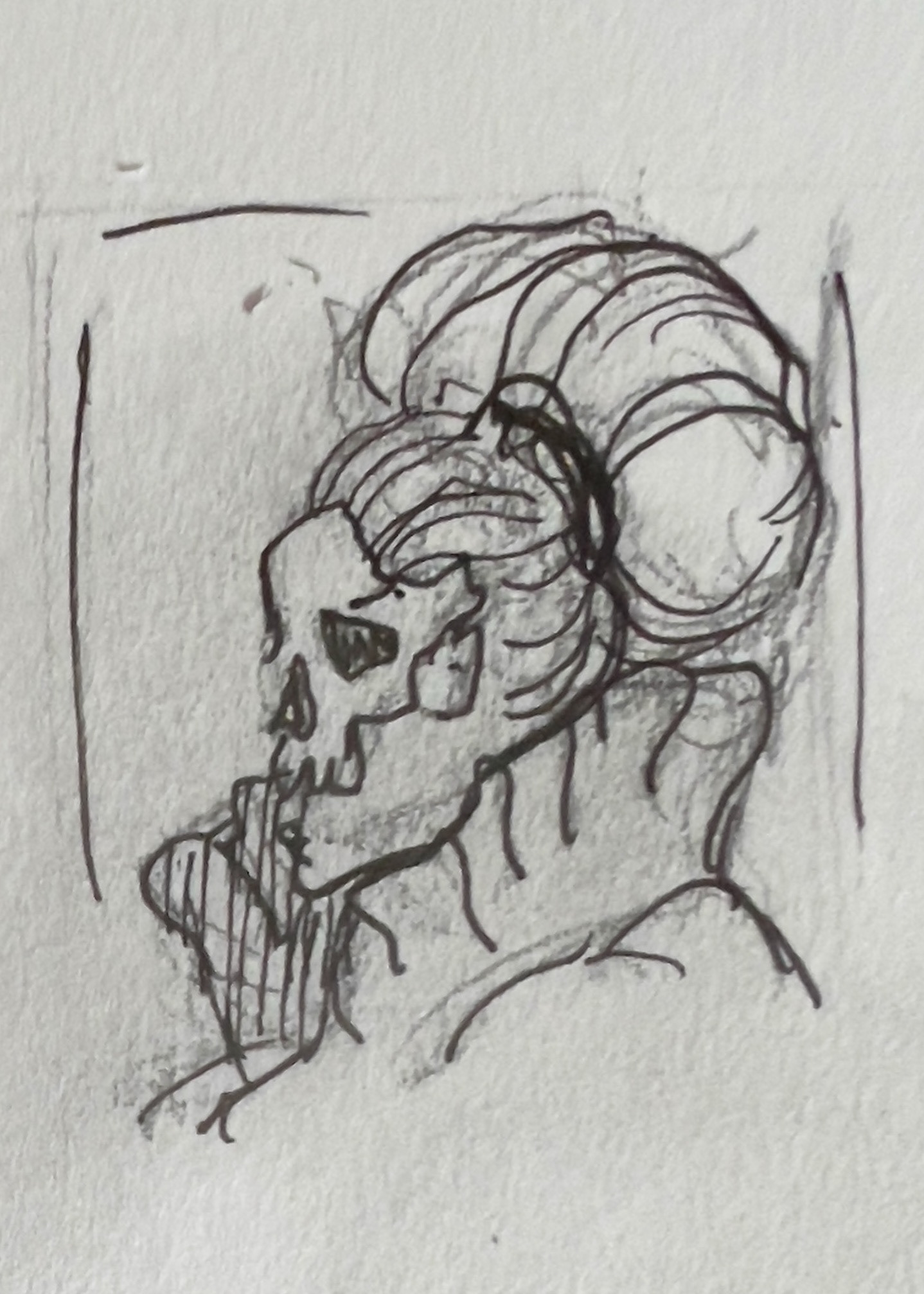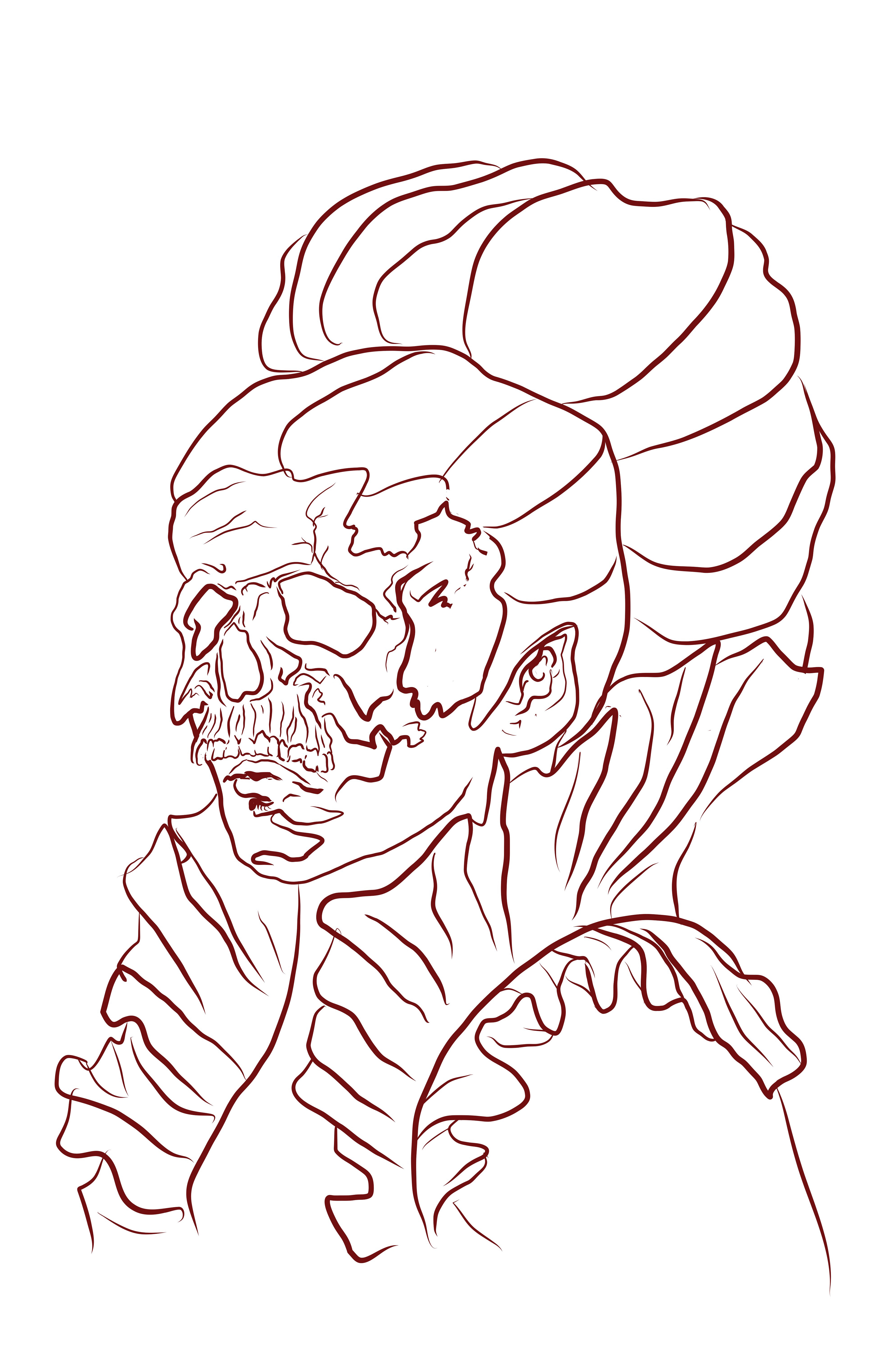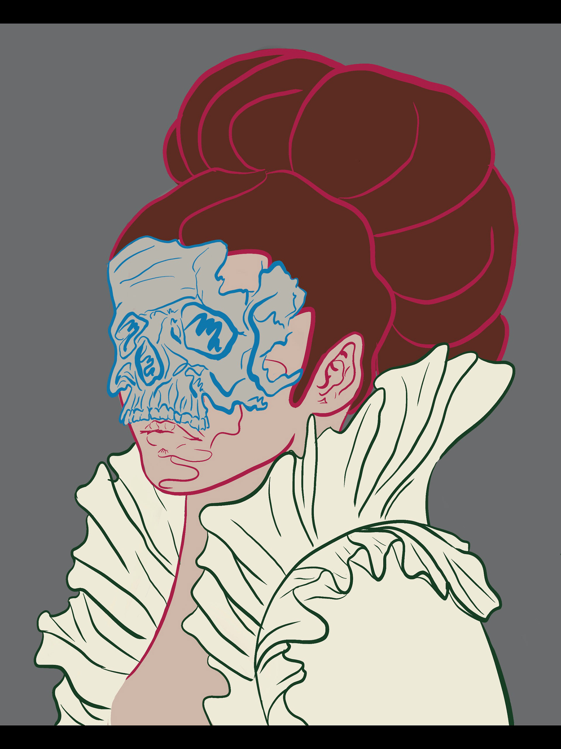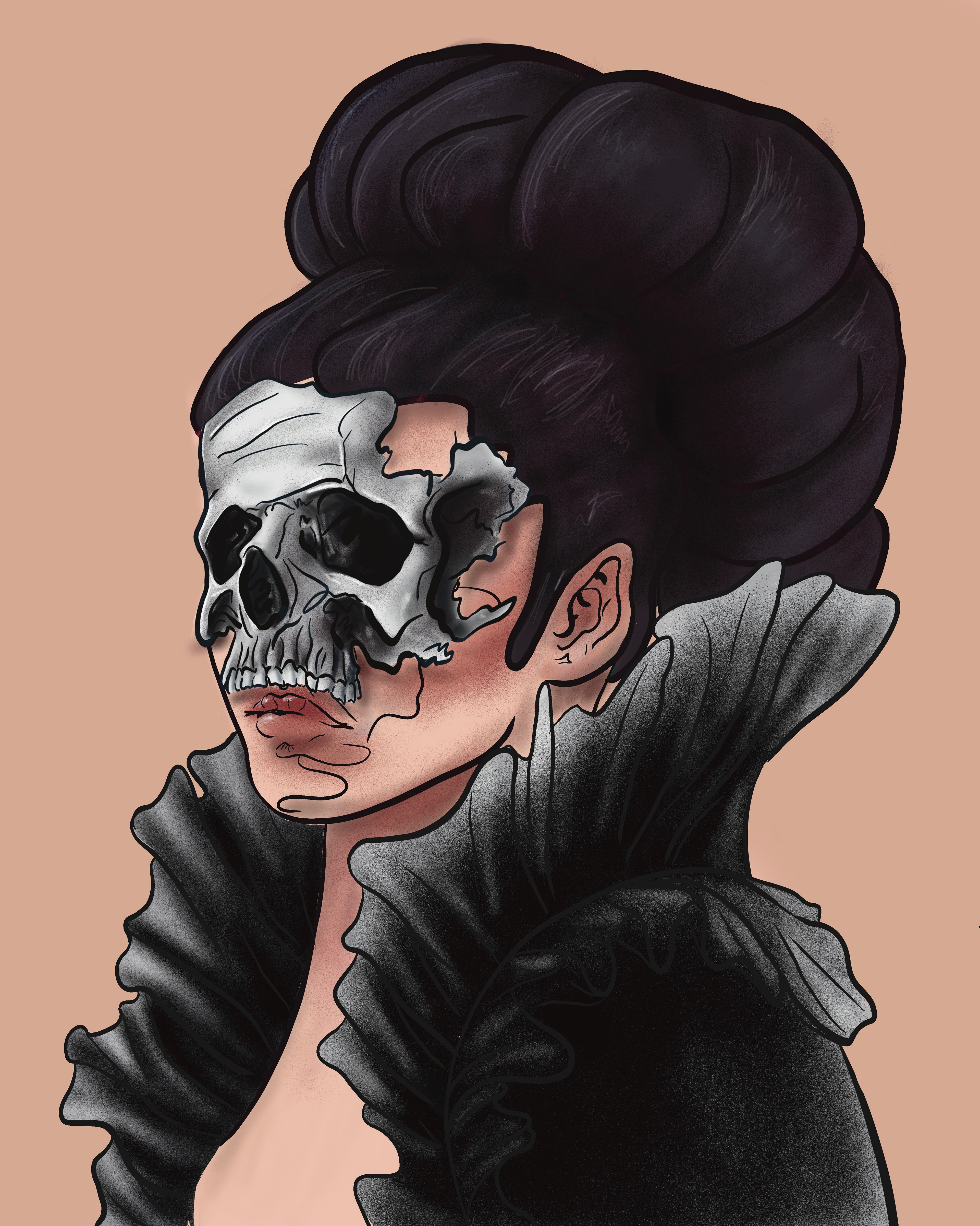 Had an idea for a woman in a big Victorian collar, wearing a mask made out of a skull.